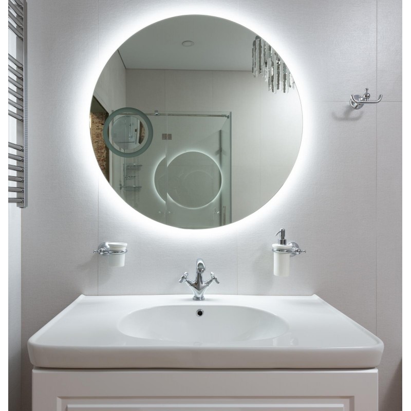 Espelho redondo com retroiluminação.